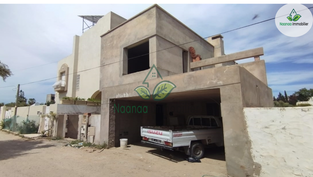 Villa  Inachevée S+3 reste seulement  30% travaux  avec Garage , compteur sonede et gaz électricité dispo , zone Hammamet sud à coté Hôtel phenicia à 100m de la plage