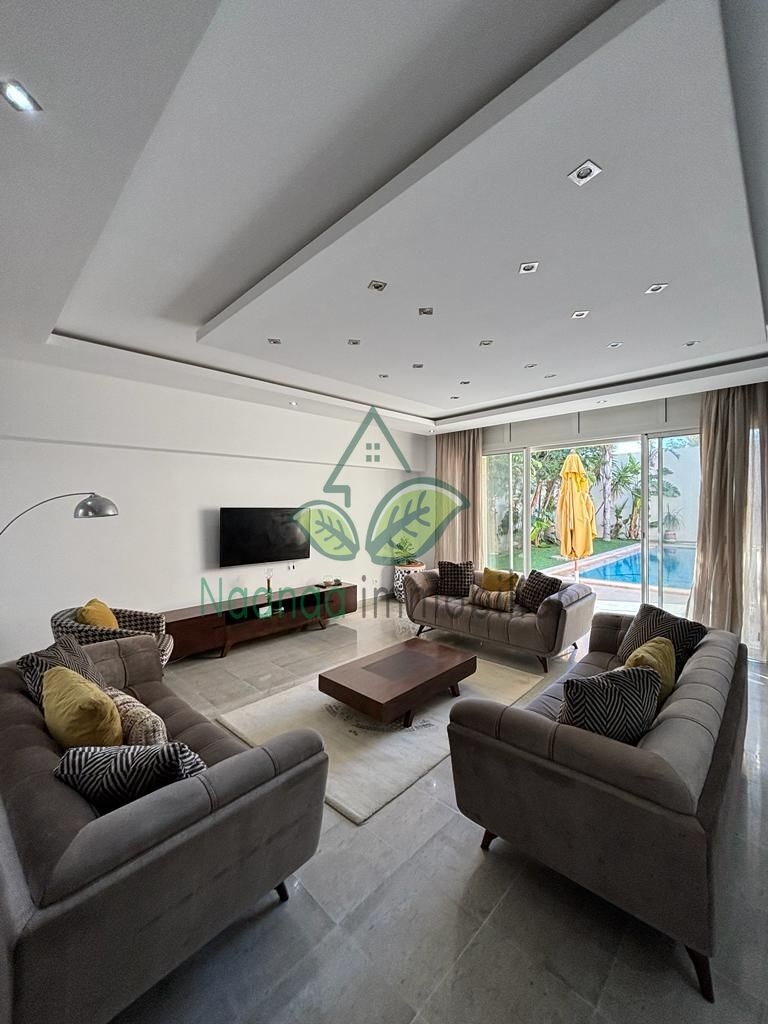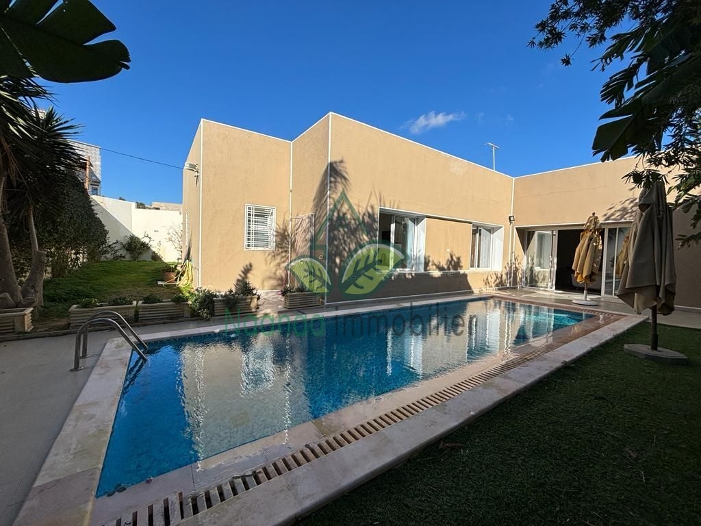 Notre agence "NaaNaa Immobilier" vous présente Villa piscine S+4 (1 suite et 3 chambre) avec jardin , zone Hammamet ceinture